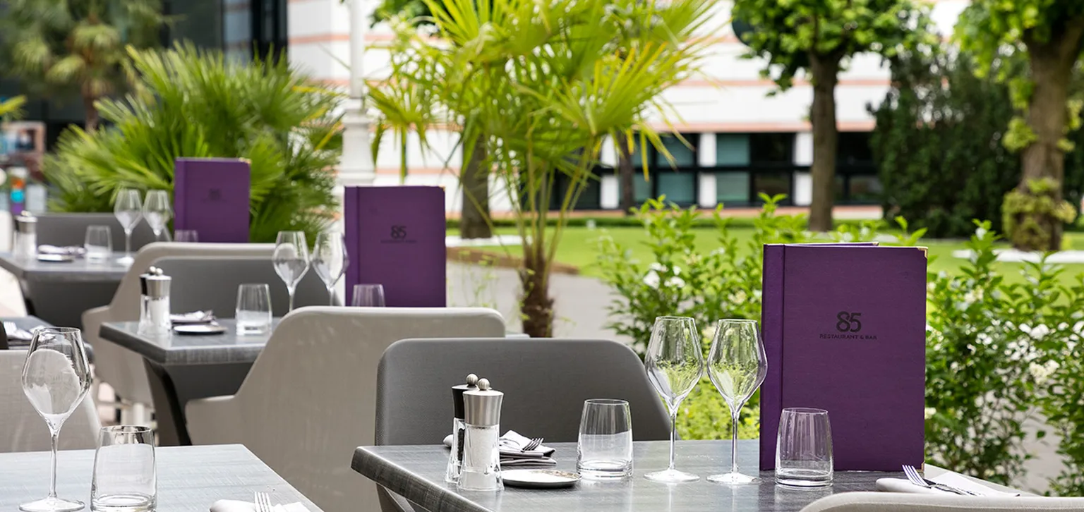 Au cœur du Grand Hôtel d'Enghien-les-Bains, le 85 Restaurant & Bar déploie son ambiance feutrée dans un cadre naturel préservé. Les baies vitrées révèlent la proximité du lac et des jardins, créant une atmosphère cosy où la lumière naturelle caresse chaque table.